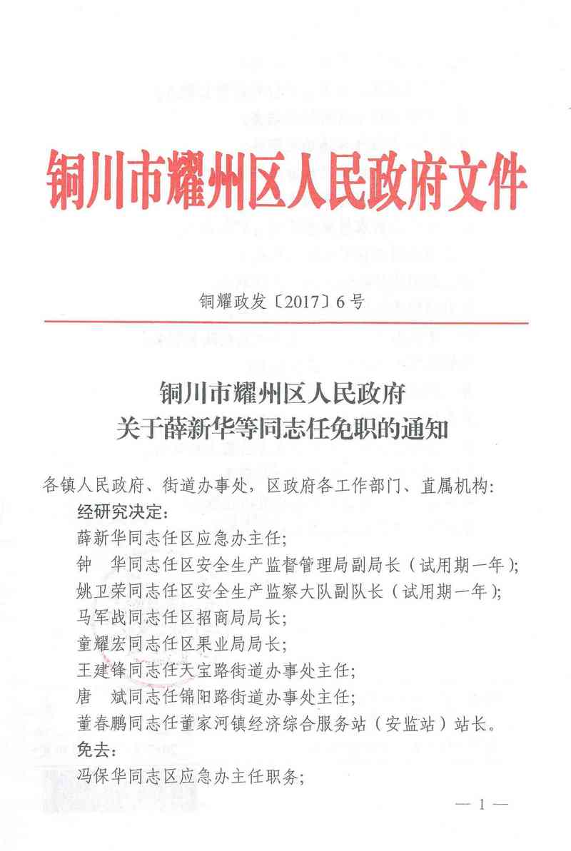 关于薛新华等同志任免职的通知